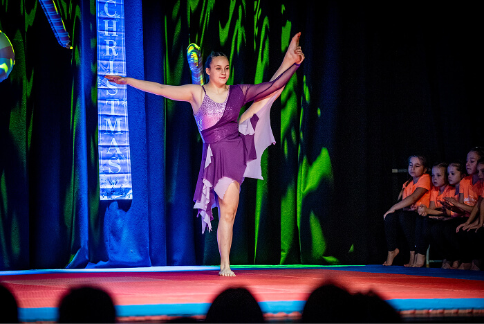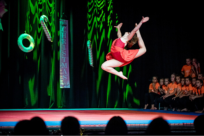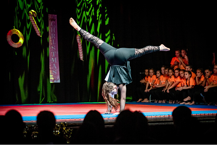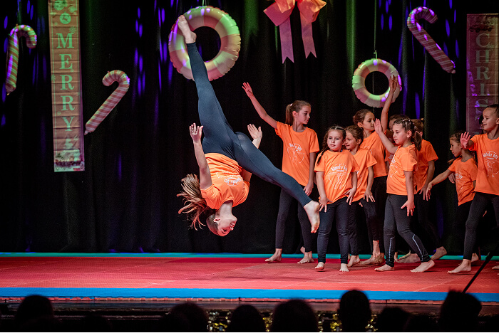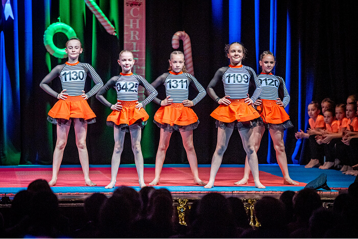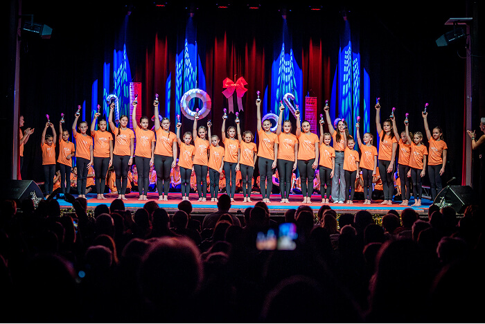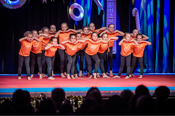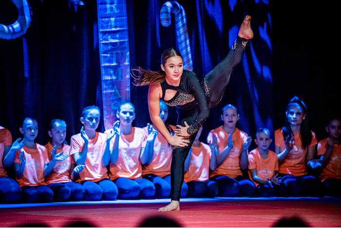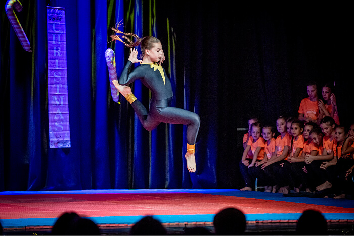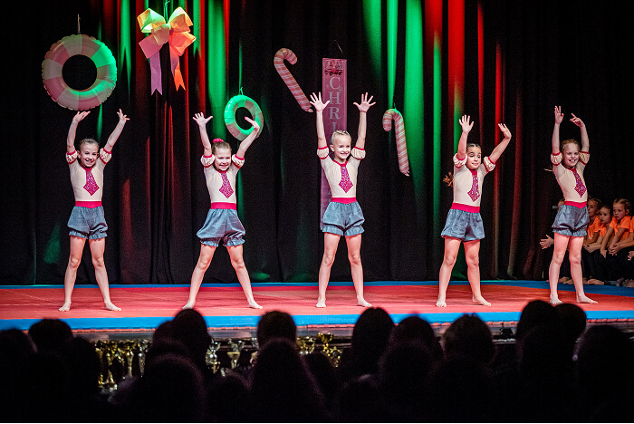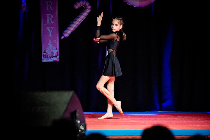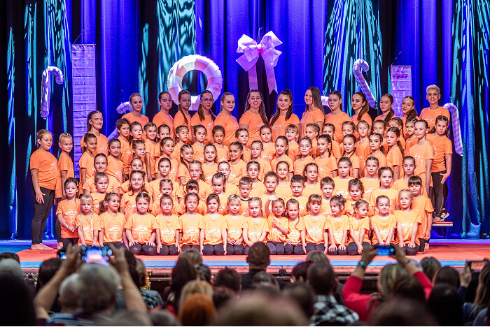 Az ovisok után az iskolák csoportos táncai következtek. Először a Kis Bálint Általános Iskola tornászai léptek színpadra, hogy bemutassák gyakorlatukat és egy közös táncot. Ezt követte a Szent Gellért Katolikus Általános Iskola csapata, majd a Rózsahegyi Kálmán Általános Iskola tornászai varázsolták el a közönséget egy látványos, karácsonyi hangulatú tánccal.