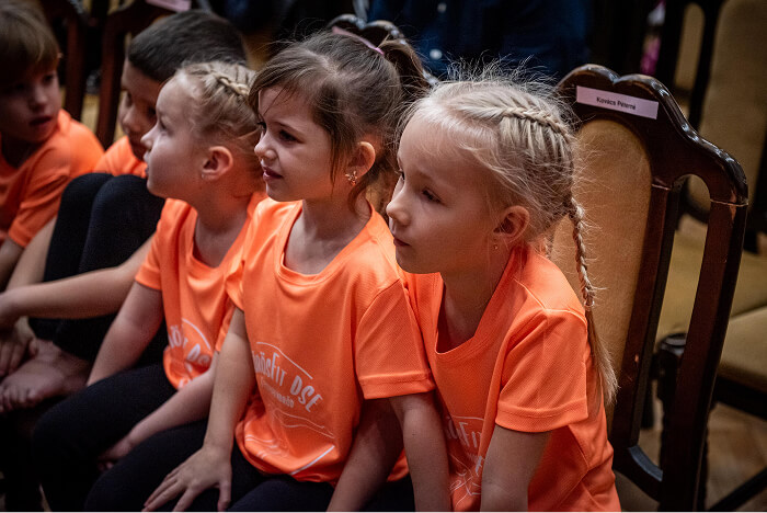 📸 Az estet a gyermekek közös fotózásával kezdték, közel 90 gyermek állt a színpadon, mindannyian az Egyesület logójával ellátott egyenpólóban, amely az adó 1%-ából valósulhatott meg. 🙏